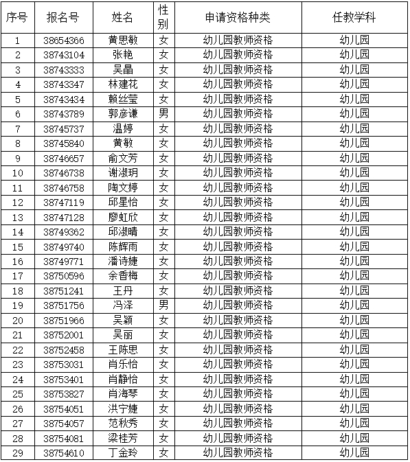 附件:将乐县教育局2024年上半年教师资格认定审批通过人员名单
