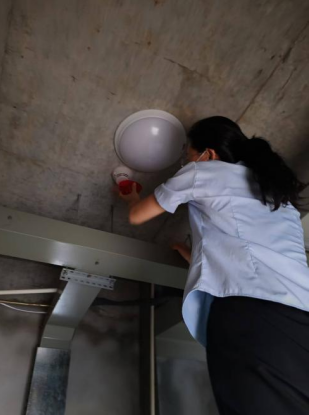 立即巡查水泵房、各配电间等有感烟探测器的部位,逐步排查并立即将保护罩拆除,保证探测器能第一时间运作。