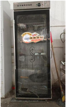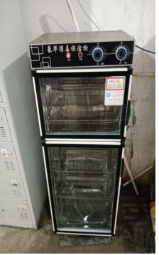 已联系专业维修人员对消毒柜进行检查,发现消毒柜已完全报废,故采购并安装了新的消毒柜。