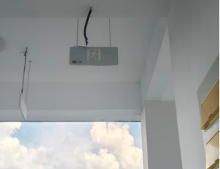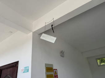 白莲镇敬老院安全出口指示牌半脱落,容易砸到老人。