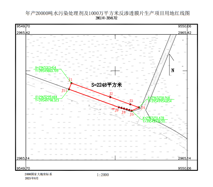 附件:年产20000吨水污染处理剂及1000万平方米反渗透膜片生产项目用地红线图