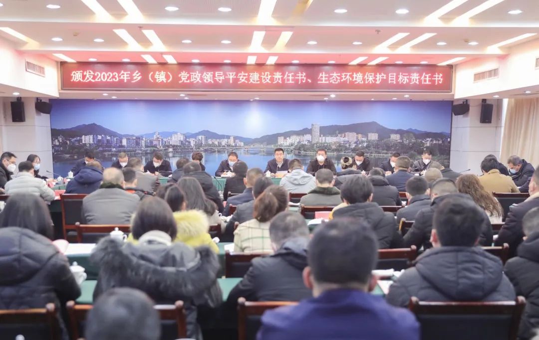 1月19日,县委、县政府举办2023年乡(镇)党政领导平安建设、生态环境保护目标责任书颁发仪式。县委书记陈羲、县长缑泽昆代表县委、县政府,分别向各乡(镇)党政主要负责同志颁发责任书。县领导周智伟、黄芳、曾志华、林振宇、陈成权、陈玉山、冯彰云、章文龙参加。