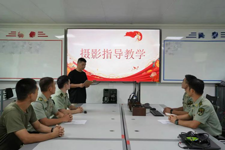 活动开始,火箭社工摄影志愿者结合自身多年摄影经验,为部队官兵细致讲解单反相机的基本操作、拍摄角度、画面抓取、光影运用等实际应用技能技巧,并手把手教授如何使用专业相机调节光圈、快门、感光度等参数。详实的摄影课程,让大家感受到了摄影的魅力与风采,同时也激发了大家对摄影的兴趣。