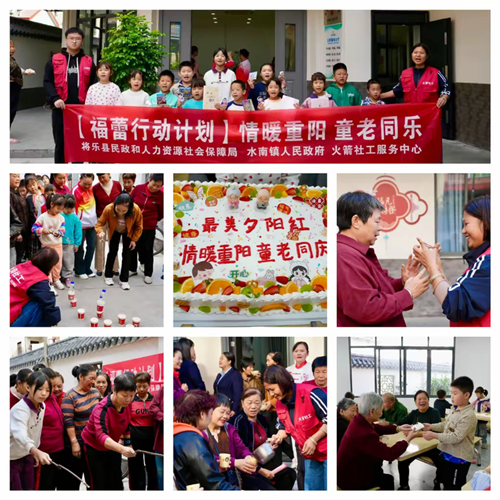 10月25日,水南镇新兴村变成了老少同乐的乐园。县民政和人社局联合水南镇政府、火箭社工,邀请留守儿童与老人一起玩怀旧游戏,一起制作手工,一起品尝香甜的蛋糕,传递跨代温情,共度秋日美好时光。
