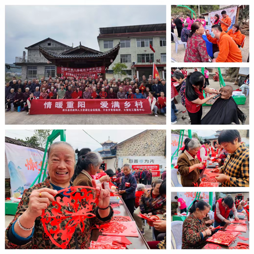 10月24日,余坊乡隆兴村率先拉开敬老活动的序幕。县民政和人社局联合余坊乡政府、火箭社工,把包含爱心义剪、口腔义诊、防诈宣传、非遗剪纸、走访慰问的“关爱大礼包”送到老人家门口。