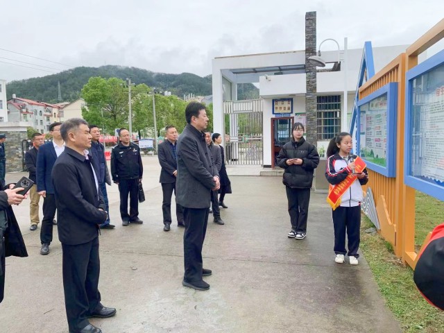沐浴新时代阳光,呵护青少年成长。3月30日,福建省未成年人保护工作联合督查组由省公安厅二级警务专员洪黄忠带队,省民政厅儿童福利处二级主任科员连峰、省民政厅儿童福利处处长廖振华、省公安厅二级高级警长李向阳、省委文明办未成中心副主任王小兰、省妇联家庭和儿童工作部干部丁烨等一行人员在三明市民政局局长邓秀广、将乐县人民政府副县长沙陈龙、万安镇镇长饶永鸣等陪同下,深入将乐县万安学校督导调研未成年人保护工作。万安学校党支部书记、校长龙平亮陪同介绍。
