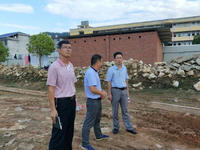 9月17日,县教育局局长施春发一行到高唐小学查看教学综合楼项目建设情况。