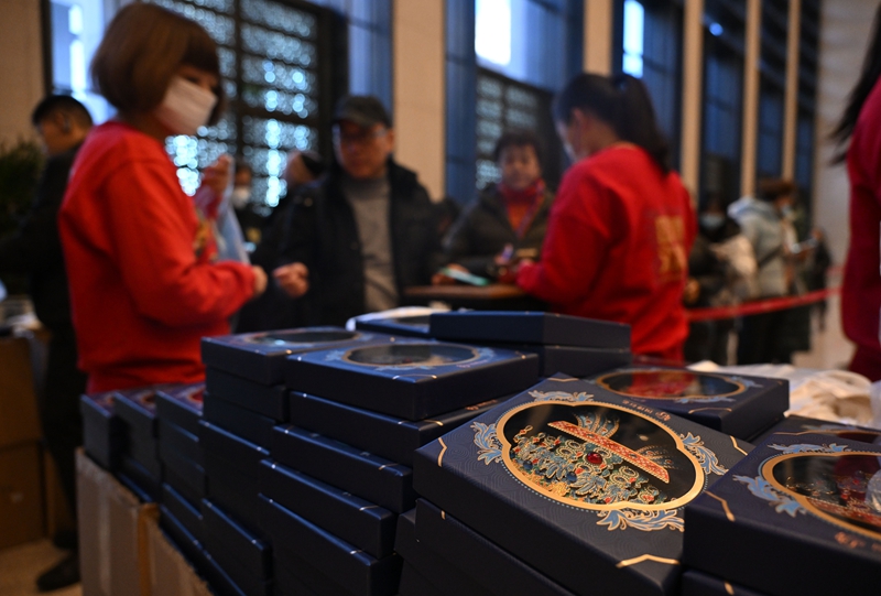 2024年12月3日,观众在中国国家博物馆排队购买凤冠冰箱贴。新华社记者 金良快 摄