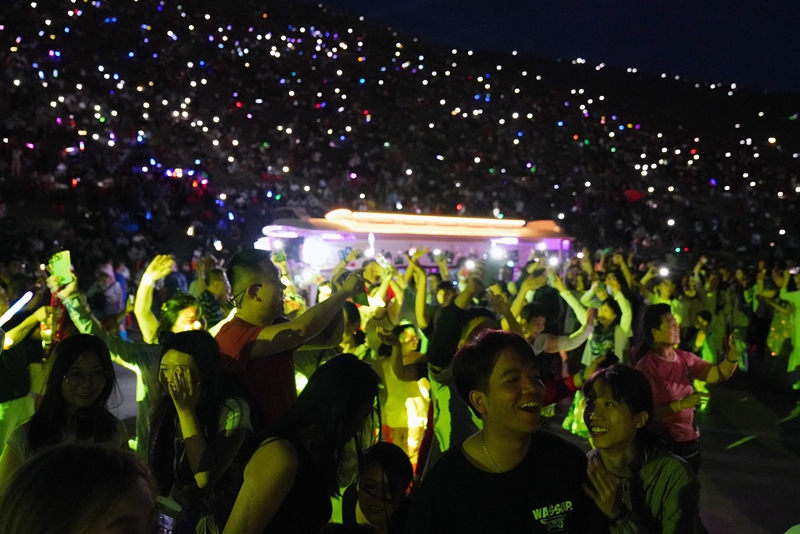 2024年7月15日晚,游客在敦煌鸣沙山月牙泉景区参加万人星空演唱会。新华社记者 马宁 摄